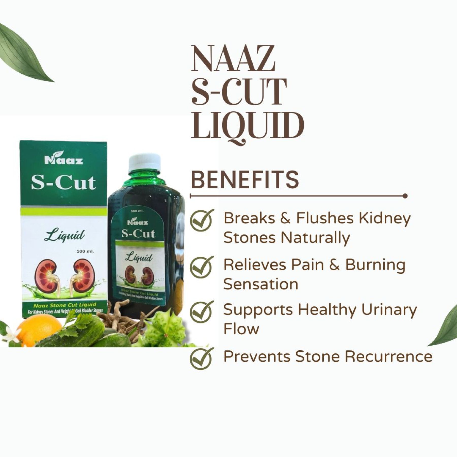 Stonecut Liquid works to break down kidney stones and ease their passage through the urinary tract. It helps relieve symptoms such as pain, burning sensation during urination, and frequent urination. It also supports detoxification of the kidneys and may help prevent recurrence by maintaining overall renal health.